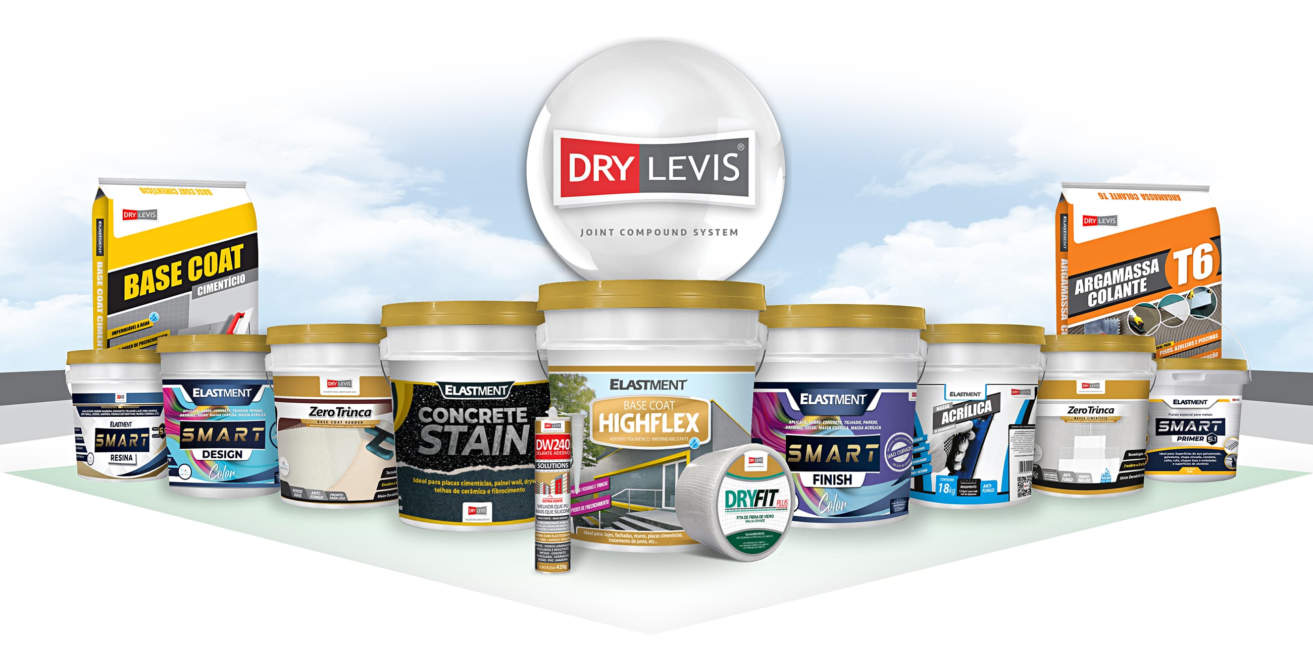 Tinta à base d’água, elastoméricada DRYLEVIS, de alta qualidade que pode ser aplicada em substratos alcalinos com alta resistência à eflorescência, calcinação e desbotamento.